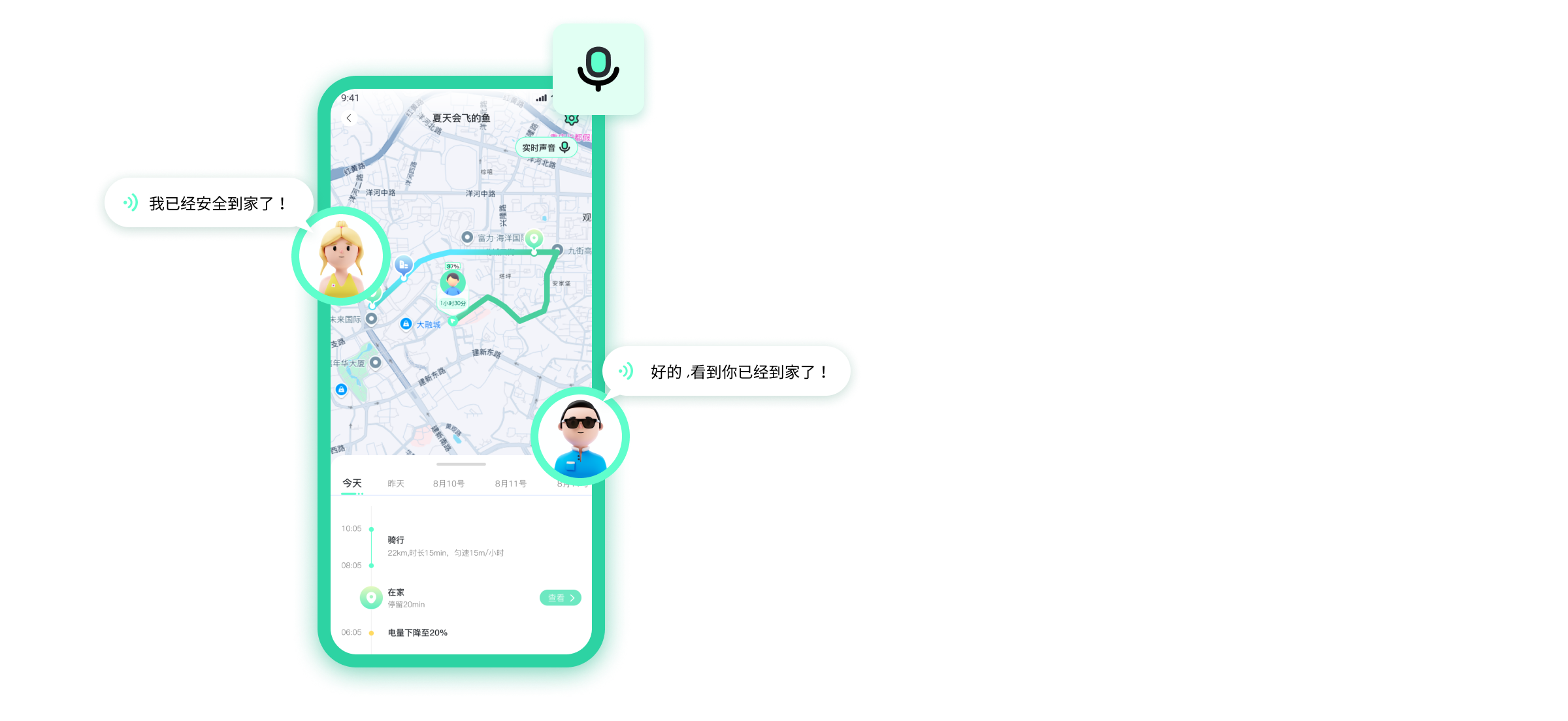 目的为用户提供安全守护,是双向语音通话,更创新地实现了全场景实时声音,遇到紧急情况时用户主动开启,实时语音通话功能不涉及录音功能。
